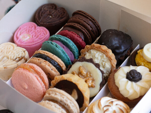 Caja mediana surtida: macarons, tarteletas y mooncakes